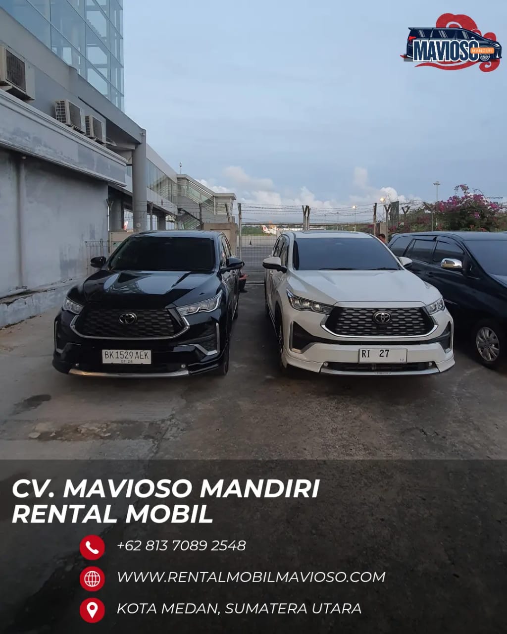 Dengan dukungan tim profesional dan berpengalaman, CV. Mavioso Mandiri senantiasa mengutamakan kepuasan pelanggan melalui pelayanan yang ramah, proses pemesanan yang mudah, serta harga yang transparan dan kompetitif. Kami hadir sebagai mitra perjalanan yang tidak hanya menyediakan mobil, tetapi juga memastikan setiap perjalanan bisnis, wisata Sumatera Utara, hingga acara istimewa Anda berjalan lancar tanpa kendala. Percayakan kebutuhan transportasi Anda kepada kami, dan rasakan pengalaman rental mobil yang terpercaya, fleksibel, dan memuaskan di Kota Medan.
