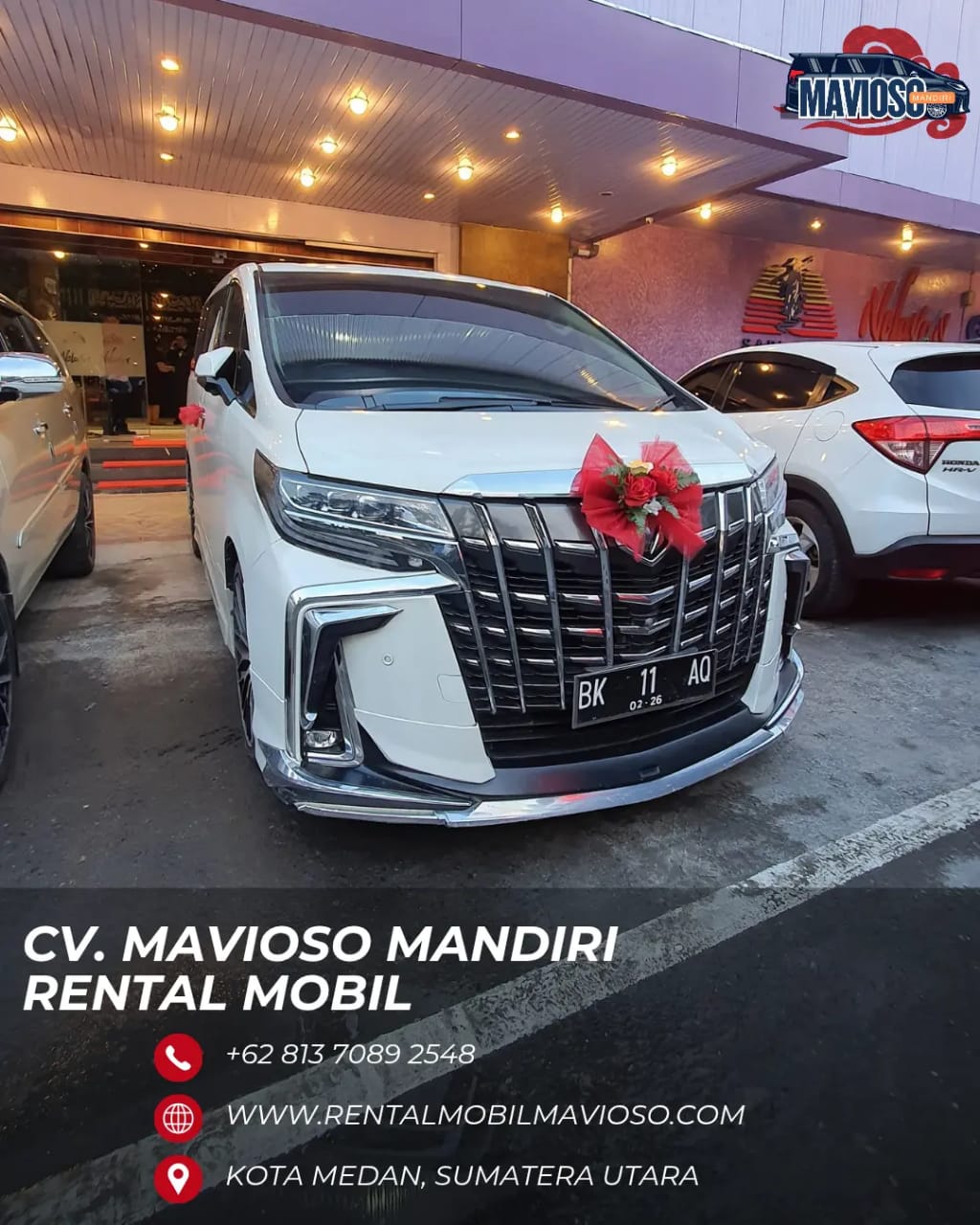 Rental mobil pengantin Medan di Mavioso Mandiri benar-benar memuaskan. Hari spesial saya jadi makin berkesan dengan Alphard putih elegan.